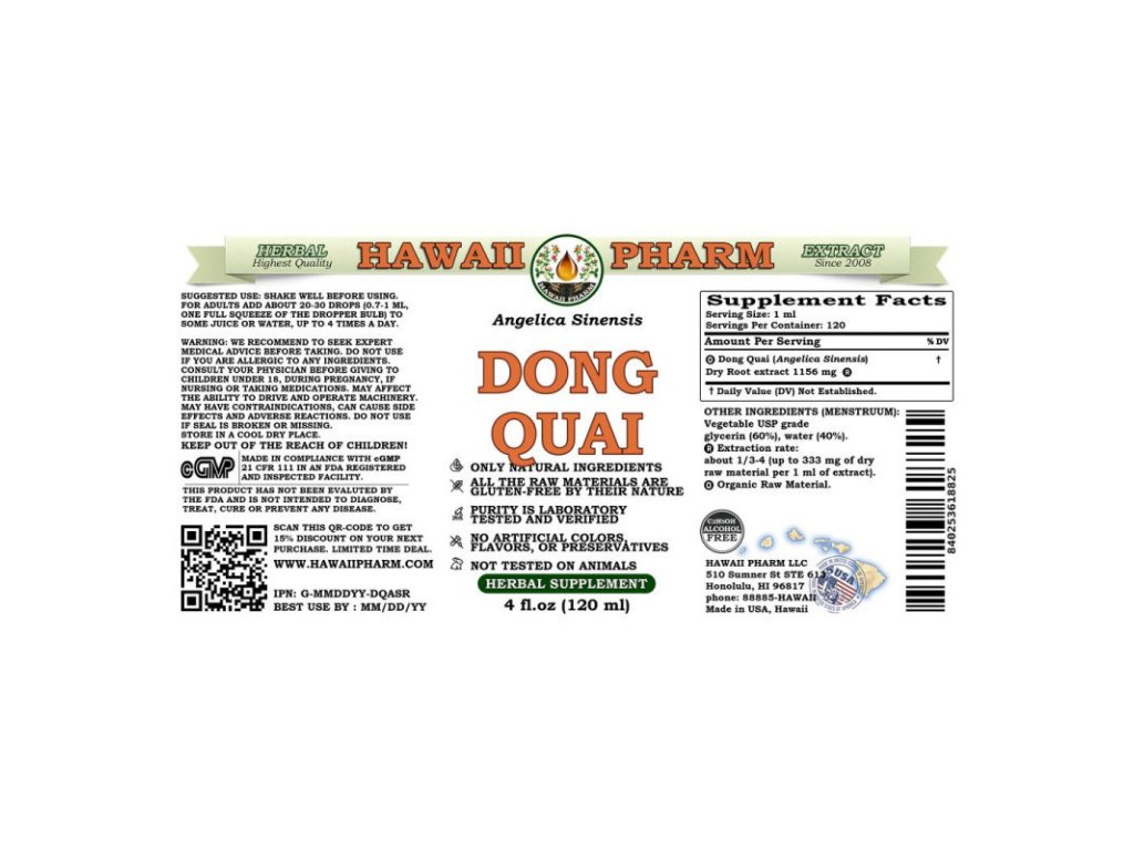 Dong Quai 120ml (Angelica sinensis), Hawaii Pharm